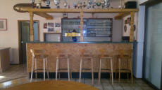 Eine Theke mit Kühlmöglichkeit, Doppelspülbecken und bequemen Sitzmöglichkeiten.